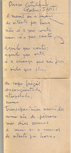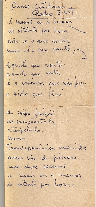 EIS AQUI O "FAC SIMILE" DO ORIGINAL DO POEMA ACIMA, REPASSADO A MIM EM MARÇO DE 1978. COMO PODE SER OBSERVADO, ELE GRAFOU "JIUSTI" COM J.